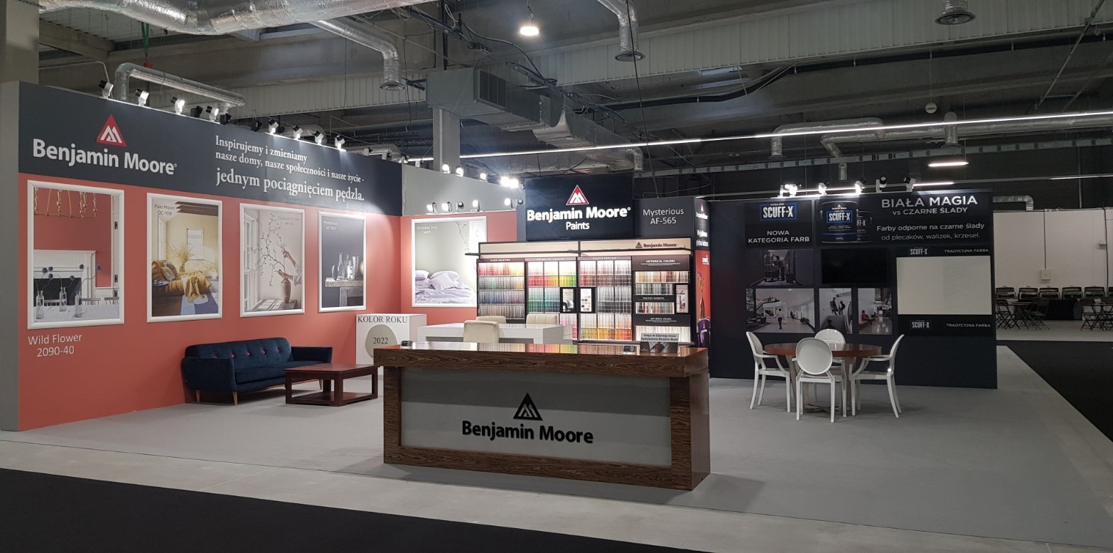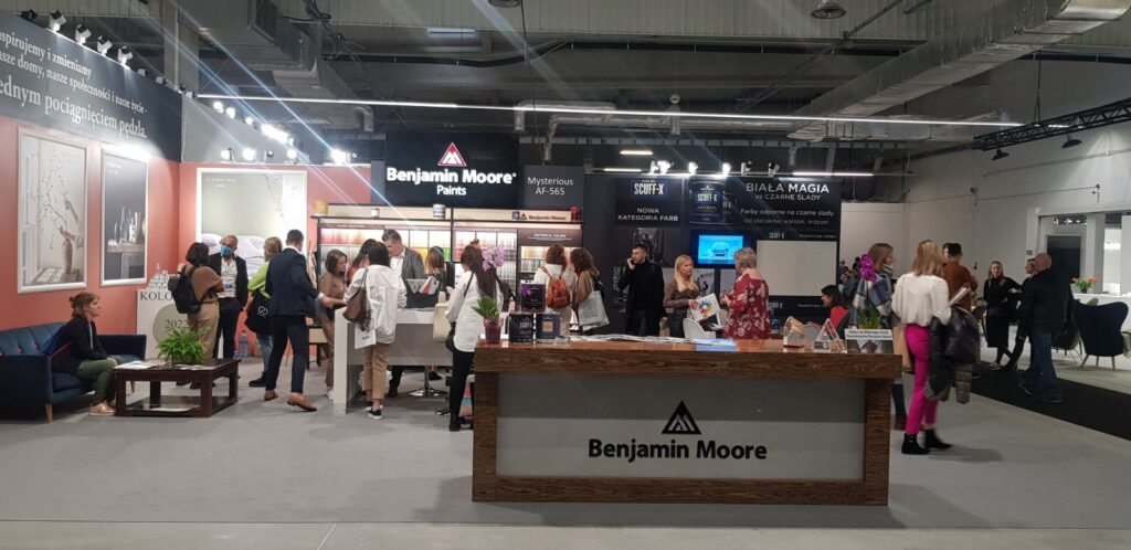 Skoro padło słowo „kolor” nie mogło zabraknąć nas - amerykańskiej marki Benjamin Moore. Na obszernym stoisku E2. 105B w hali E prezentowaliśmy to, z czego słyniemy – wyjątkową kolorystykę, w tym „KOLOR ROKU 2022” i trendy na kolejny sezon oraz najwyższą jakość naszych farb.