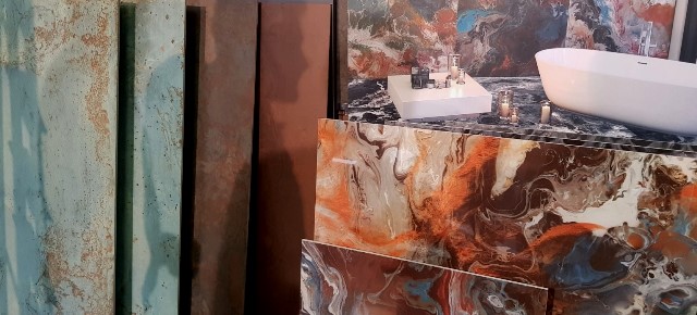 Niesamowite wrażenie robią magiczne płytki z kolekcji „Fluid” oraz „Alchemy 7.6” marki Apavisa.