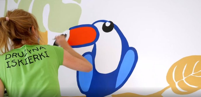 Drugie skrzydło IV piętra w GZCD również dotknął kolorowy pędzel Fundacji Iskierka. Po raz kolejny Fundacja nie ograniczyła się do prac malarskich.