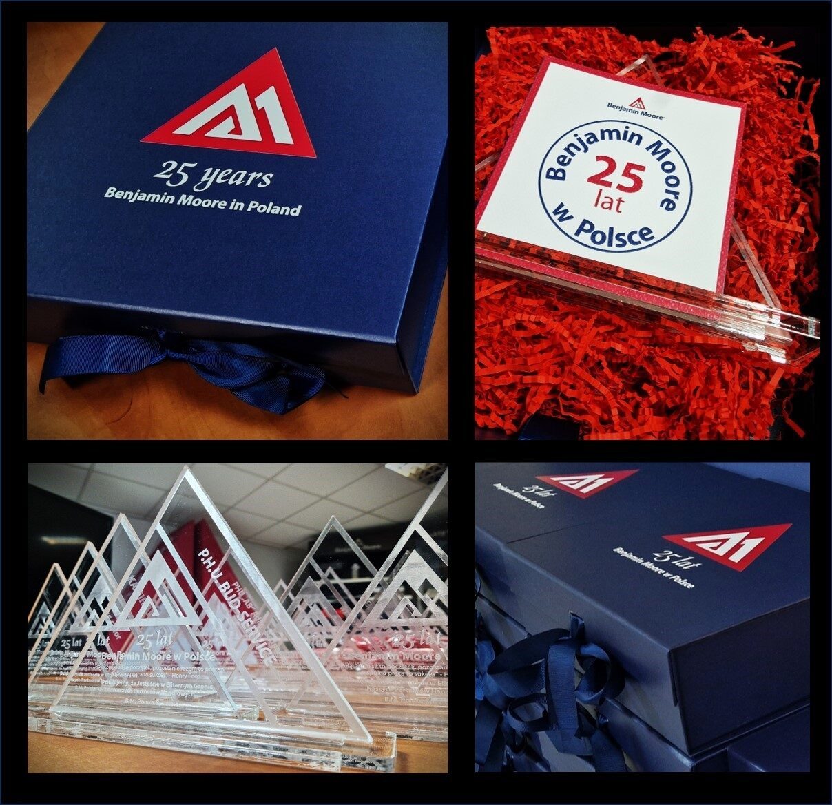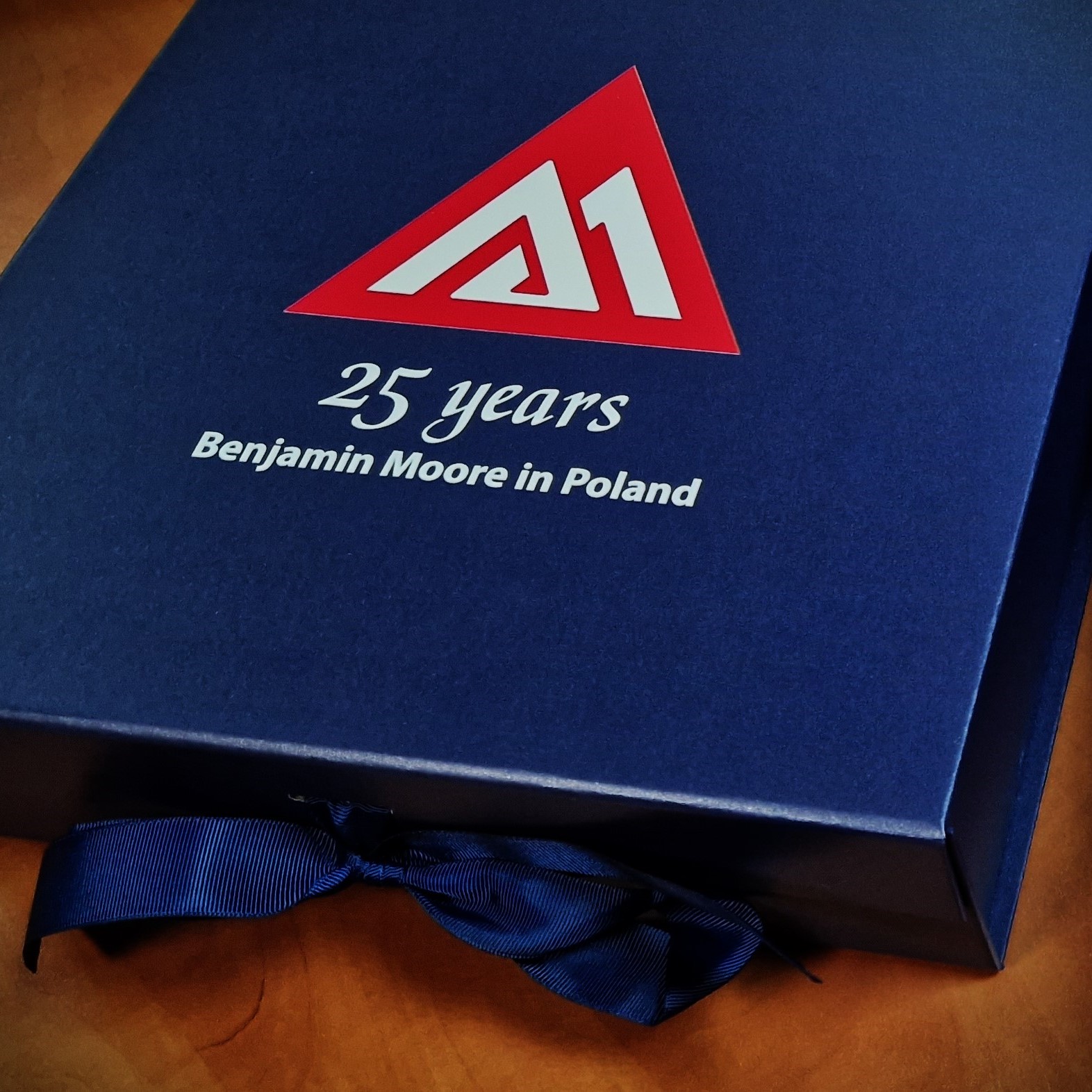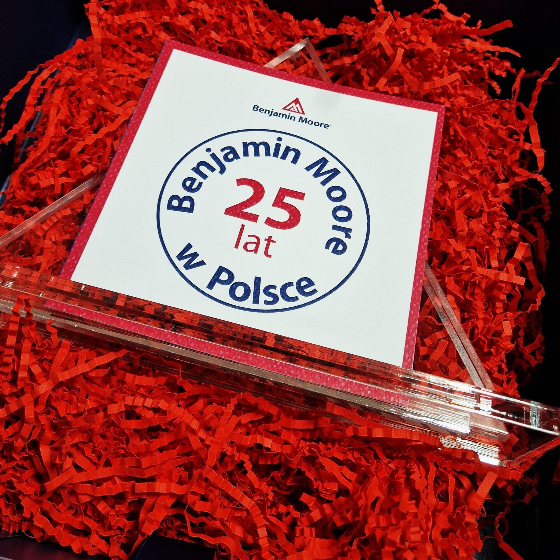 Przedstawiciele koncernu Benjamin Moore & Co. wręczyli B.M. Polska nagrodę pamiątkową jako dowód uznania przy tak wyjątkowej okazji.