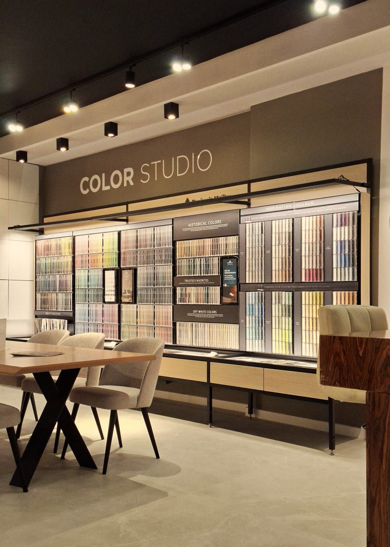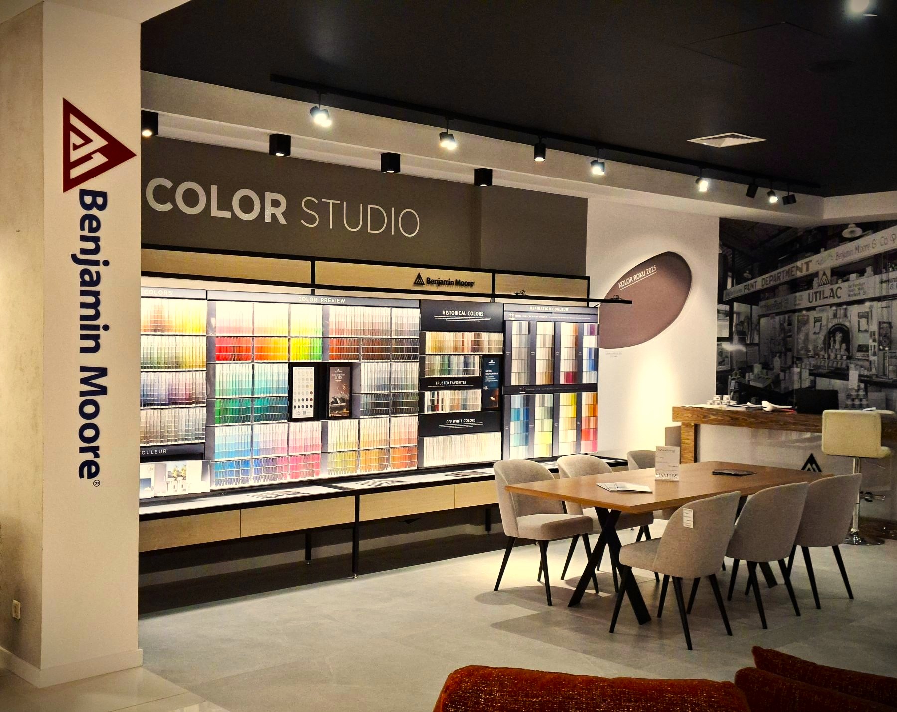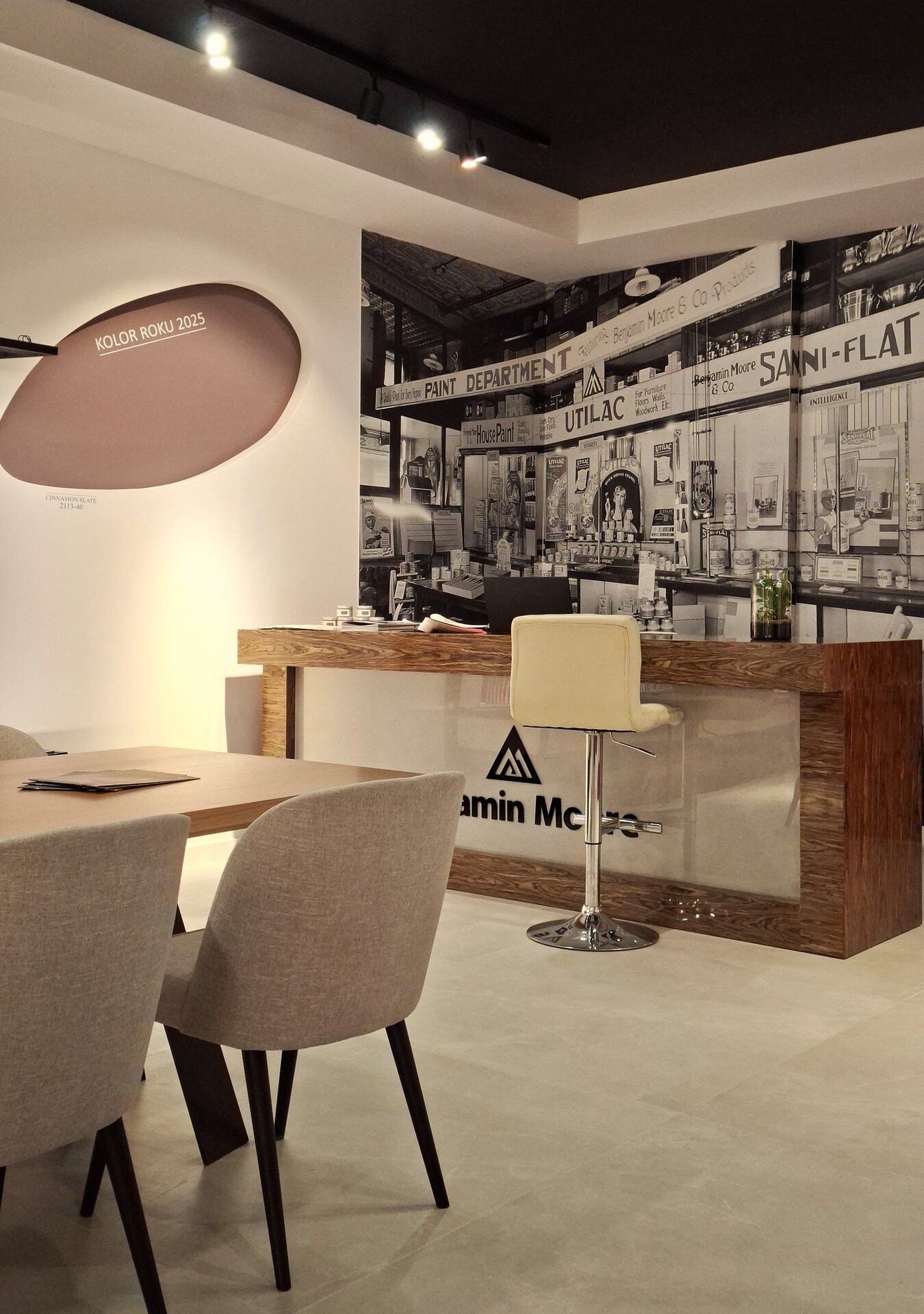„Pracownikom MAXFLIZ często zadawano pytanie o farby segmentu premium. W odpowiedzi, odwiedzający showroom otrzymali dokładnie to, czego oczekiwali. Wszystkich wita słynna Betty Moore, a na dwóch ścianach wyeksponowaliśmy historyczne zdjęcie wnętrza jednego z amerykańskich sklepów Benjamin Moore” – podkreśla Artur Nowak, Dyrektor operacyjny Benjamin Moore Polska.