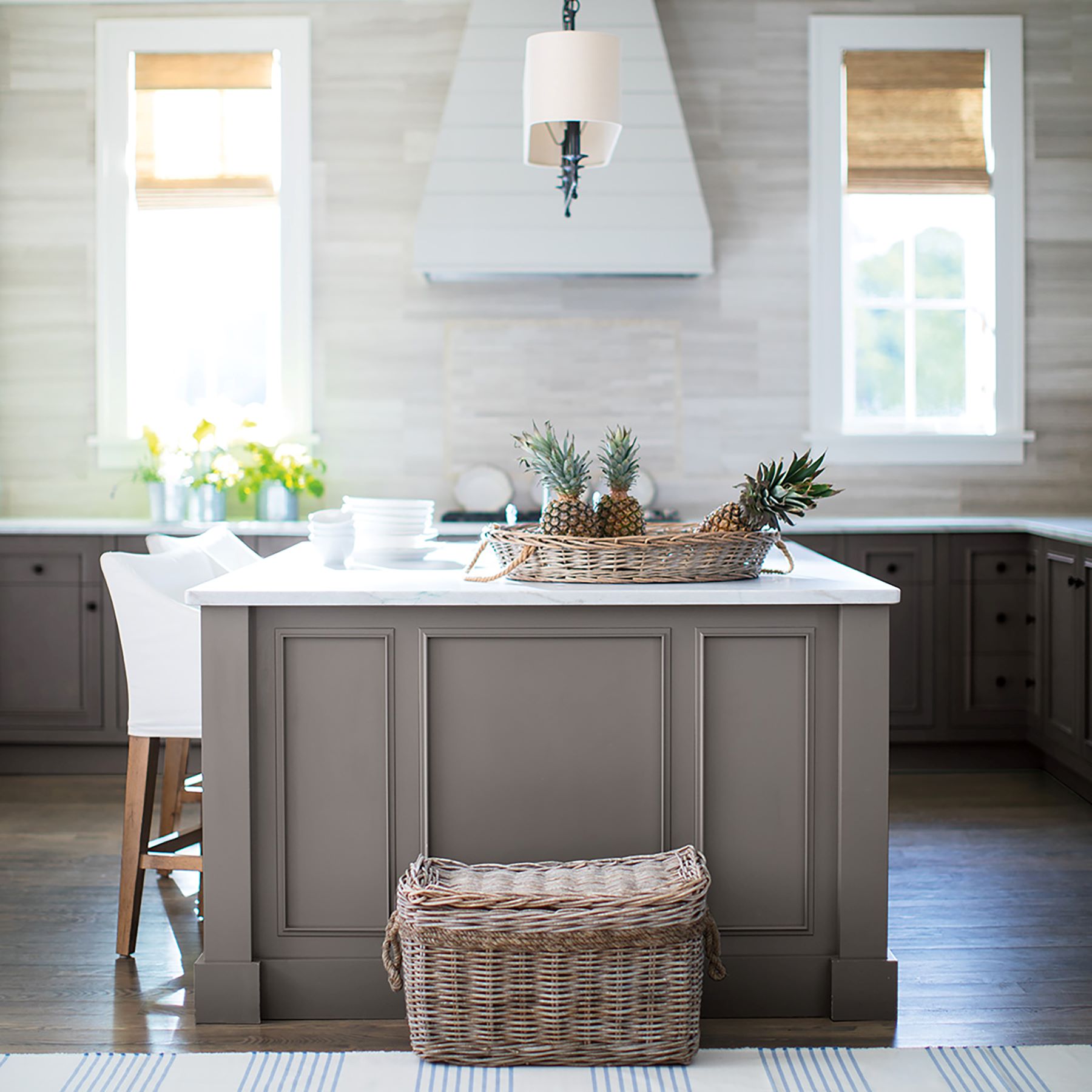 Nowy „look” moich szafek osiągnęłam za pomocą emalii satynowej Advance 792 (dostępnej również w wysokim połysku Advance N794) w szaro-beżowym odcieniu.