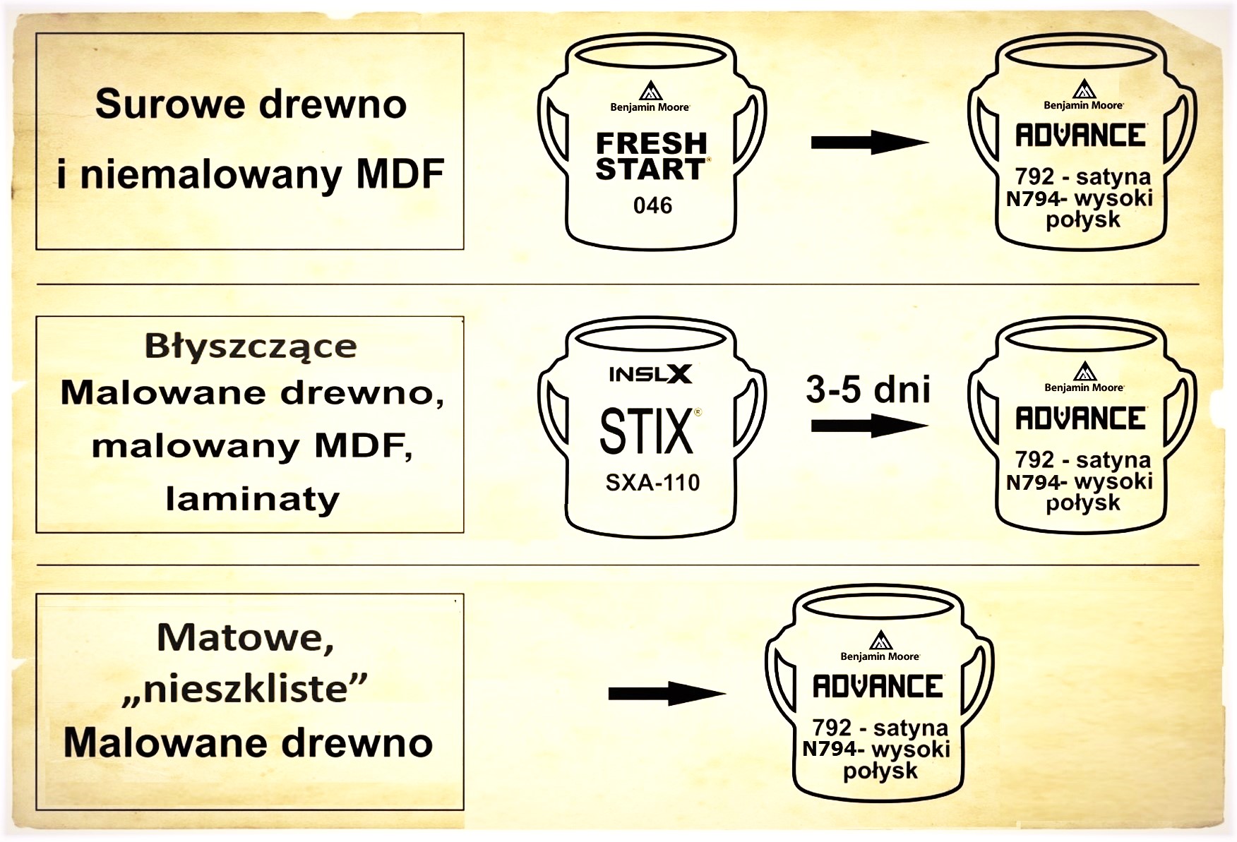 Jak widzicie zmiana koloru mebli z Benjamin Moore jest prosta i przyjemna. Dla ułatwienia przygotowałam dla Was poręczną ściągę.