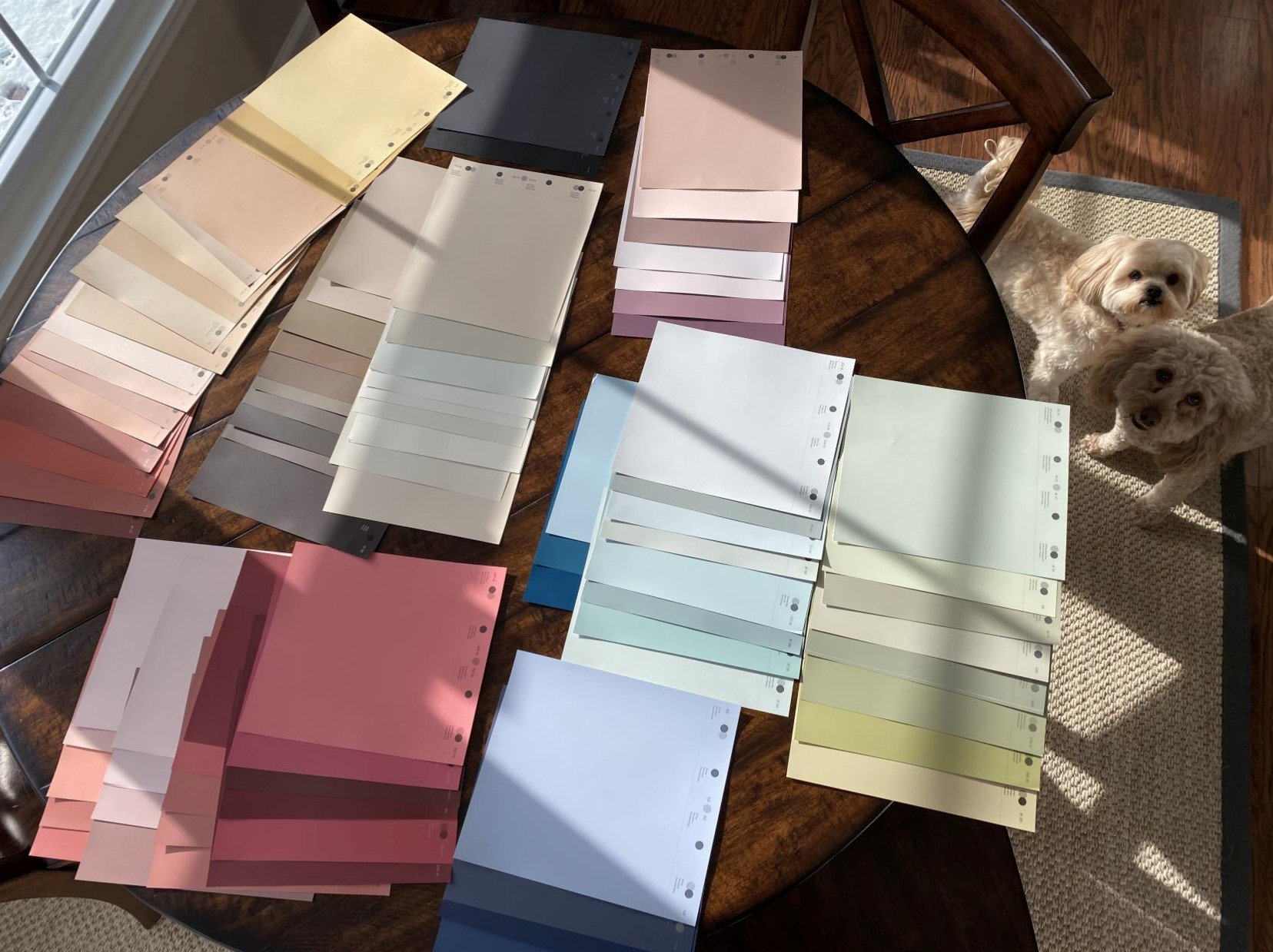 Jeszcze w zimie, na wczesnym stadium wyboru trendów kolorystycznych, podczas pracy ze swoim Color Team w trybie online Andrea Magno, Color Marketing and Development Director zaprosiła do projektu dwa psy (Bode and Will). Oczywiście na stole „w grze” widać jeszcze wiele kolorystycznych możliwości. Z czasem ostra selekcja mocno zawęziła gamę barw.