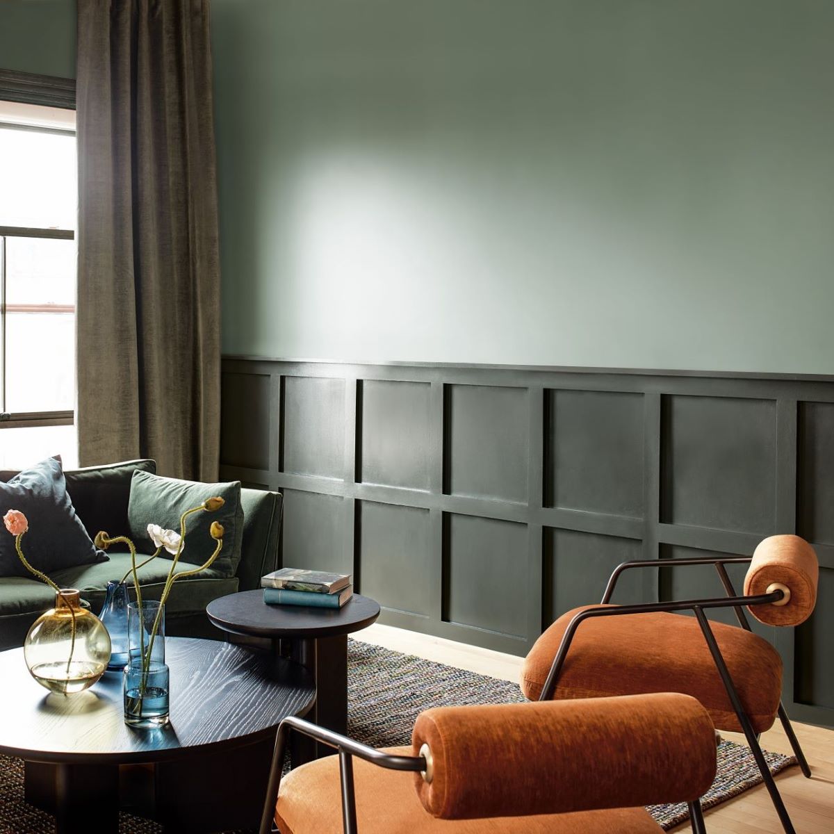 „Ashwood Moss" może pełnić rolę zieleni, szarości lub czerni w zależności od otoczenia, wprowadzając głębię i rodzaj intrygi do każdej palety barw.