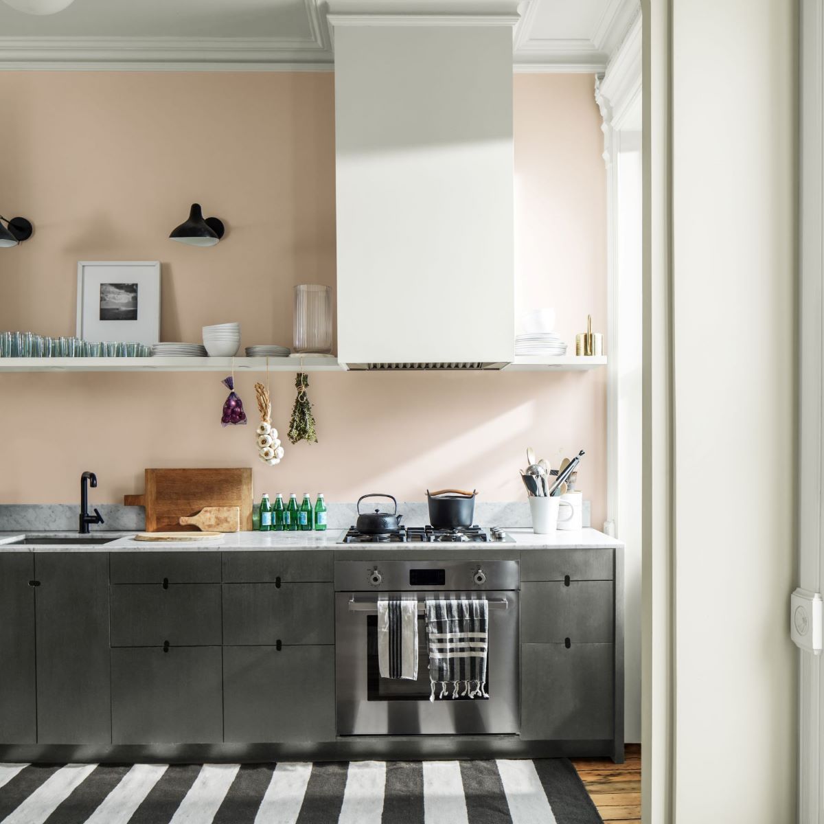 „Rosepine 461” stanowi doskonałe rozwiązanie kolorystyczne dla szafek kuchennych eksponowanych na tle ścian w neutralnych tonacjach.