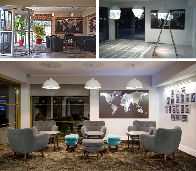 Ostatni remont przypadający na końcówkę grudnia 2015 odsłonił zupełnie inne oblicze lobby i recepcji. Z ciepłych barw takich jak kremowy, złoty czy czerwony nastąpiło przejście na chłodniejsze kolory. Na ścianach zakrólowały tak modne teraz szarość i biel ożywione turkusowymi dodatkami w postaci aksamitnych sof.