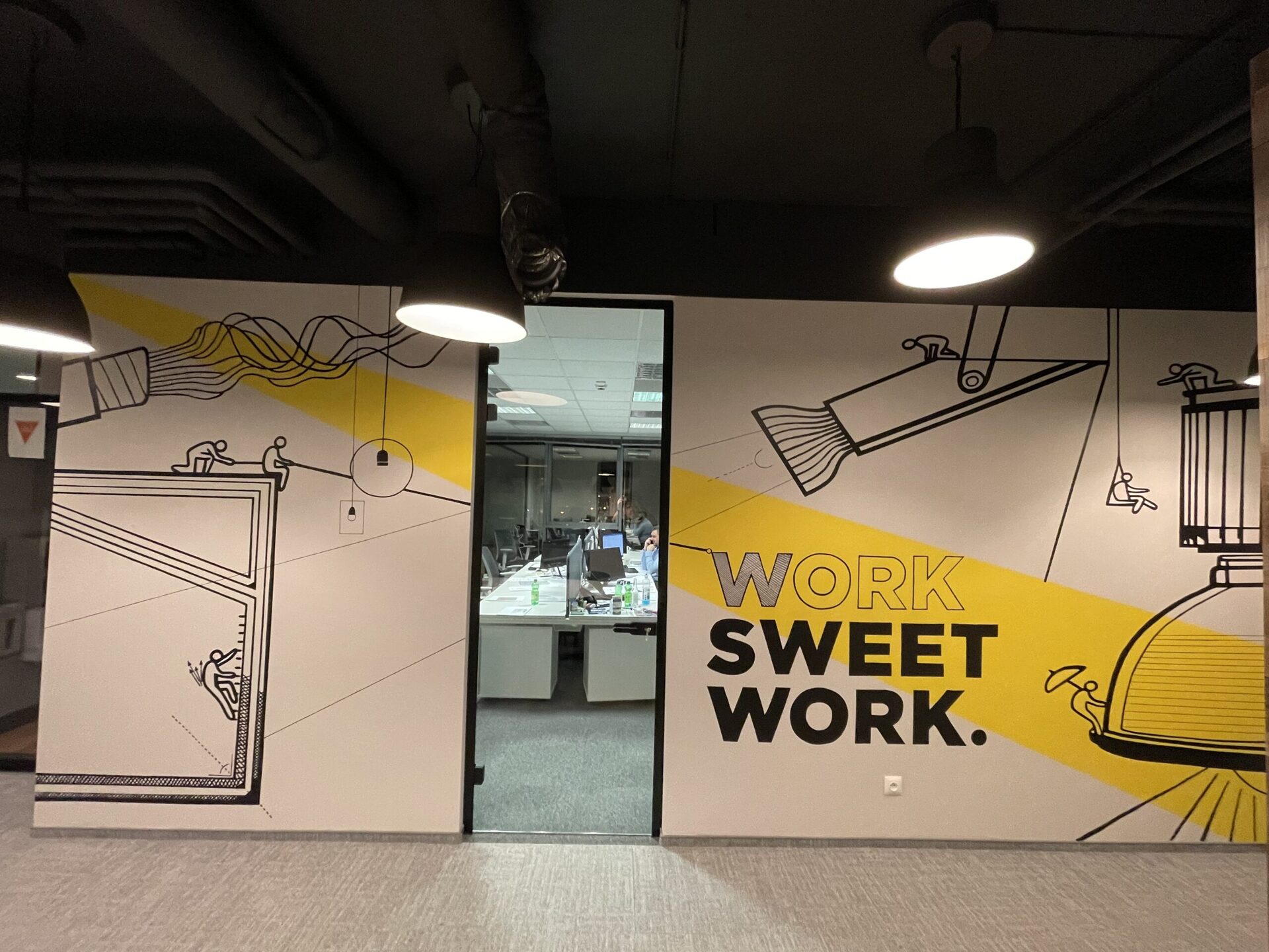 A.D.: Murale zacząłem malować jeszcze za czasów mojej nauki w Liceum Plastycznym w Gdyni Orłowie. Znajoma poprosiła mnie, abym namalował w pokoju jej syna scenę z bajki ,,Kubuś Puchatek’’. Później urodził jej się kolejny syn i dla niego namalowałem motyw z bajki ,,Gdzie jest Nemo’’. I tak pocztą pantoflową otrzymywałem kolejne zlecenia wykonywane dla przychodni lekarskich, przedszkoli. Gdy rozpocząłem studia na Akademii Sztuk Pięknych w Gdańsku zabrakło mi czasu na malowanie murali i zarzuciłem temat… Prawdziwy boom na ten rodzaj sztuki zaczął się podczas pandemii. Zamknięto lokale gastronomiczne, a ludzie pozamykani w swoich czterech ścianach poczuli potrzebę zmiany otoczenia i dekorowania swoich mieszkań. Zaczęli budować w nich oazy spokoju i odpoczynku, ale także przestrzenie do pracy zdalnej.